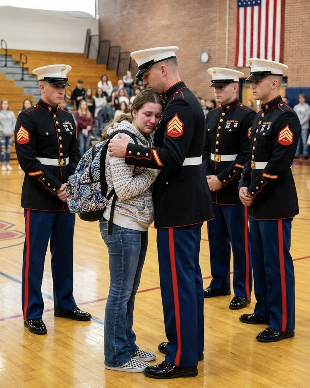 Stajala sam na ulazu u salu dok su svi pogledi bili usmjereni prema bini, a tišina koja je ispunila prostor bila je toliko snažna da sam mogla čuti vlastito disanje dok sam pokušavala shvatiti šta se dešava i zašto su ti ljudi došli baš danas. Niko nije govorio. Niko se nije pomjerao. Učenici su sjedili mirno, kao da osjećaju težinu trenutka. A ja sam tražila pogled svoje kćerke.
