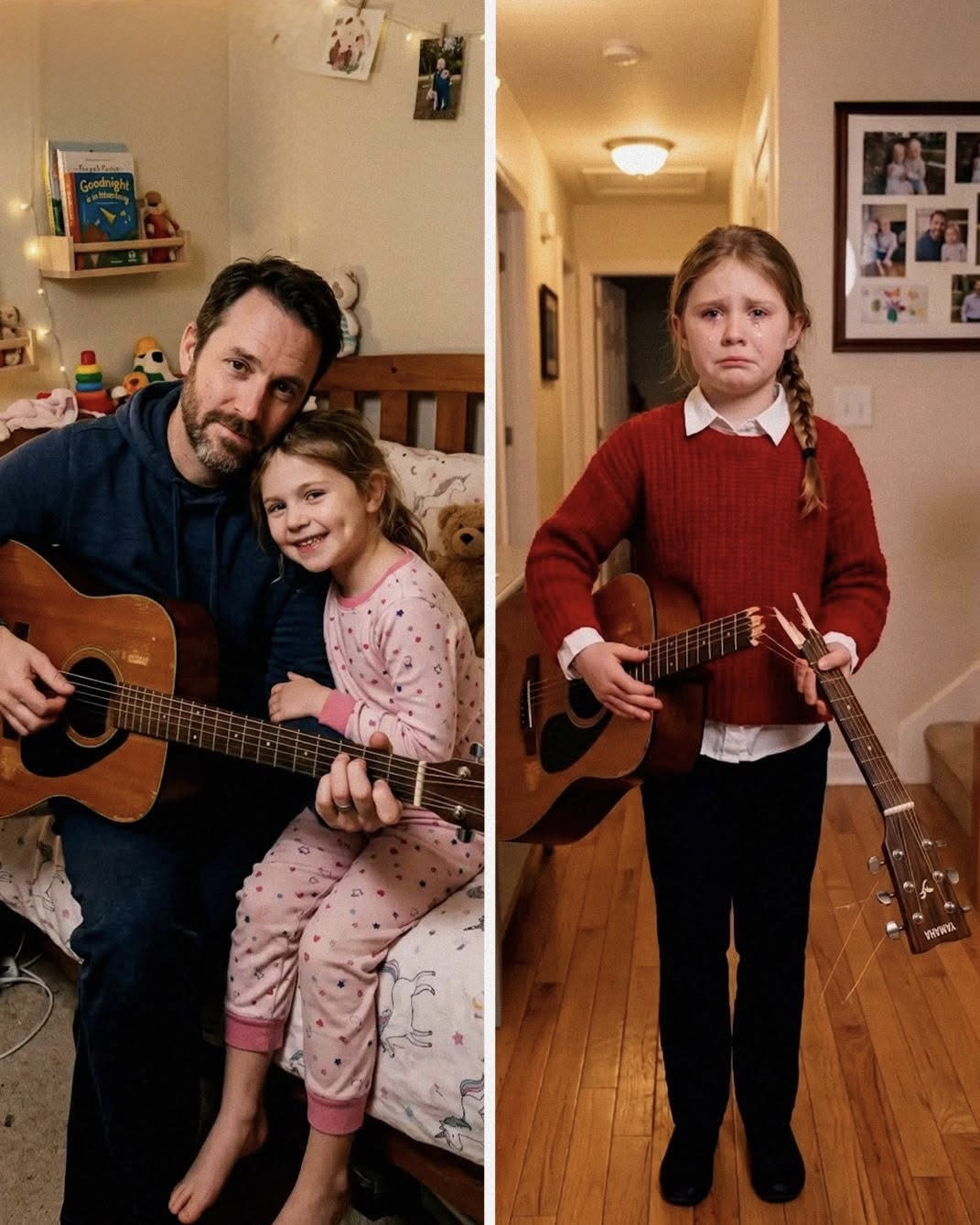Moja kćerka Lejla ima devet godina i otkako joj je otac preminuo, postala je tiša nego što jedno dijete ikada treba biti, kao da je dio nje ostao negdje između uspomena i tišine koju ne zna objasniti. Njen tata je svaku večer sjedio kraj njenog kreveta i svirao gitaru dok ne zaspi, i ta gitara je postala jedina stvar koja joj je ostala da je podsjeća na njega. Nekoliko mjeseci prije nego što je otišao, dao joj je tu gitaru i rekao da će jednog dana svirati za njega, i ona je to shvatila ozbiljnije nego bilo šta drugo u svom malom svijetu. Kada je škola najavila talent show, došla je do mene držeći gitaru i tiho rekla da želi odsvirati pjesmu za svog tatu, i znala sam da joj to znači više od bilo čega.